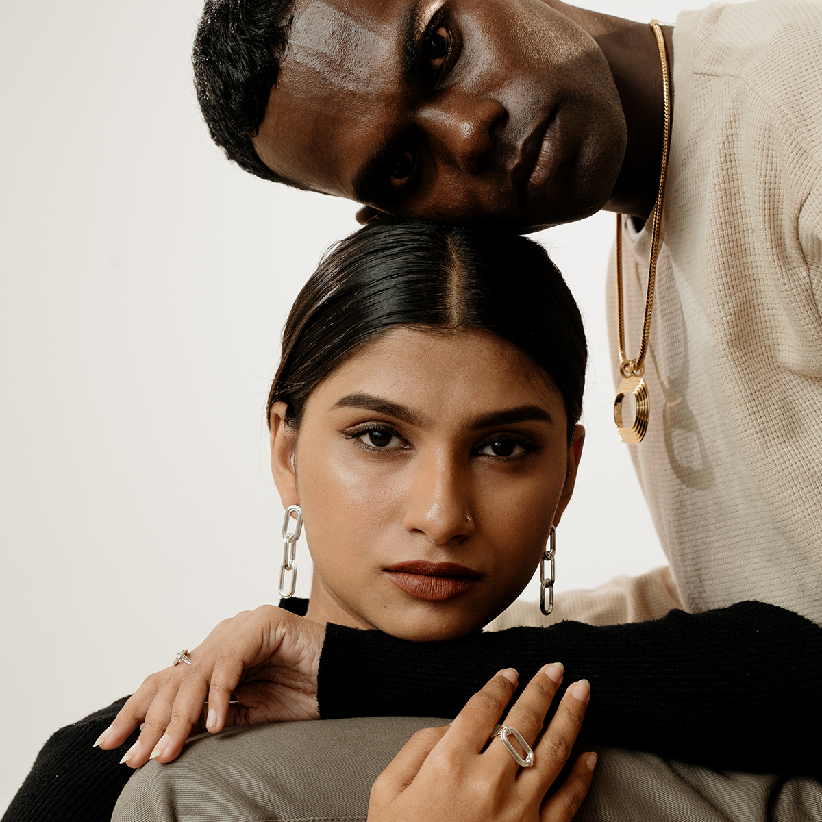 Short link earrings with stepped metal detail. Handcrafted in Brass with 18k Gold plating.