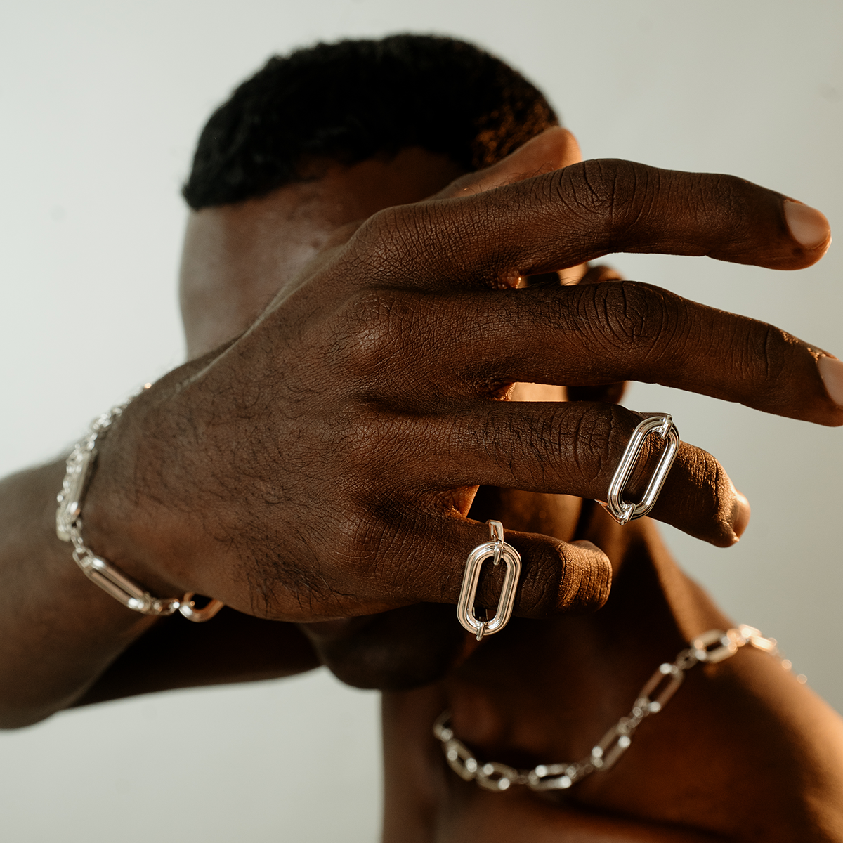 Handcrafted in Brass with 18k Gold plating and rhodium plating.