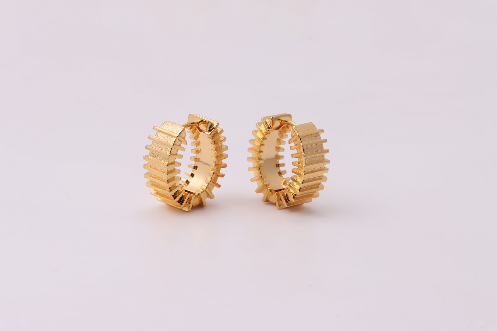 Oval hoops with bar detail. Handcrafted in Brass with 18k gold plating and rhodium plating.